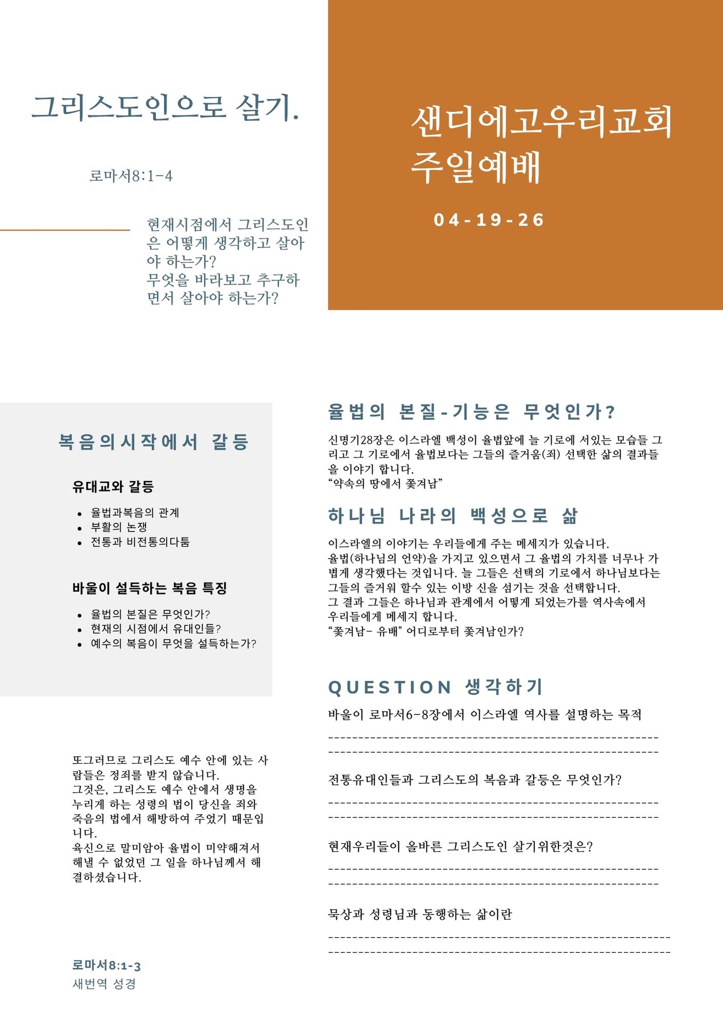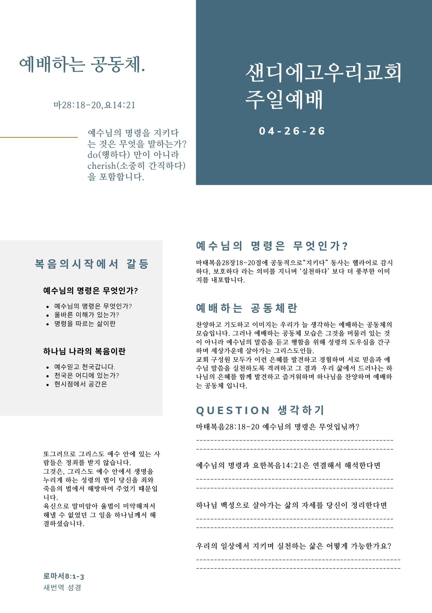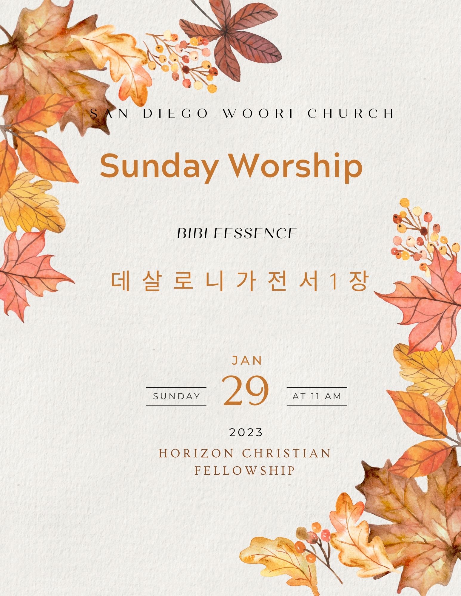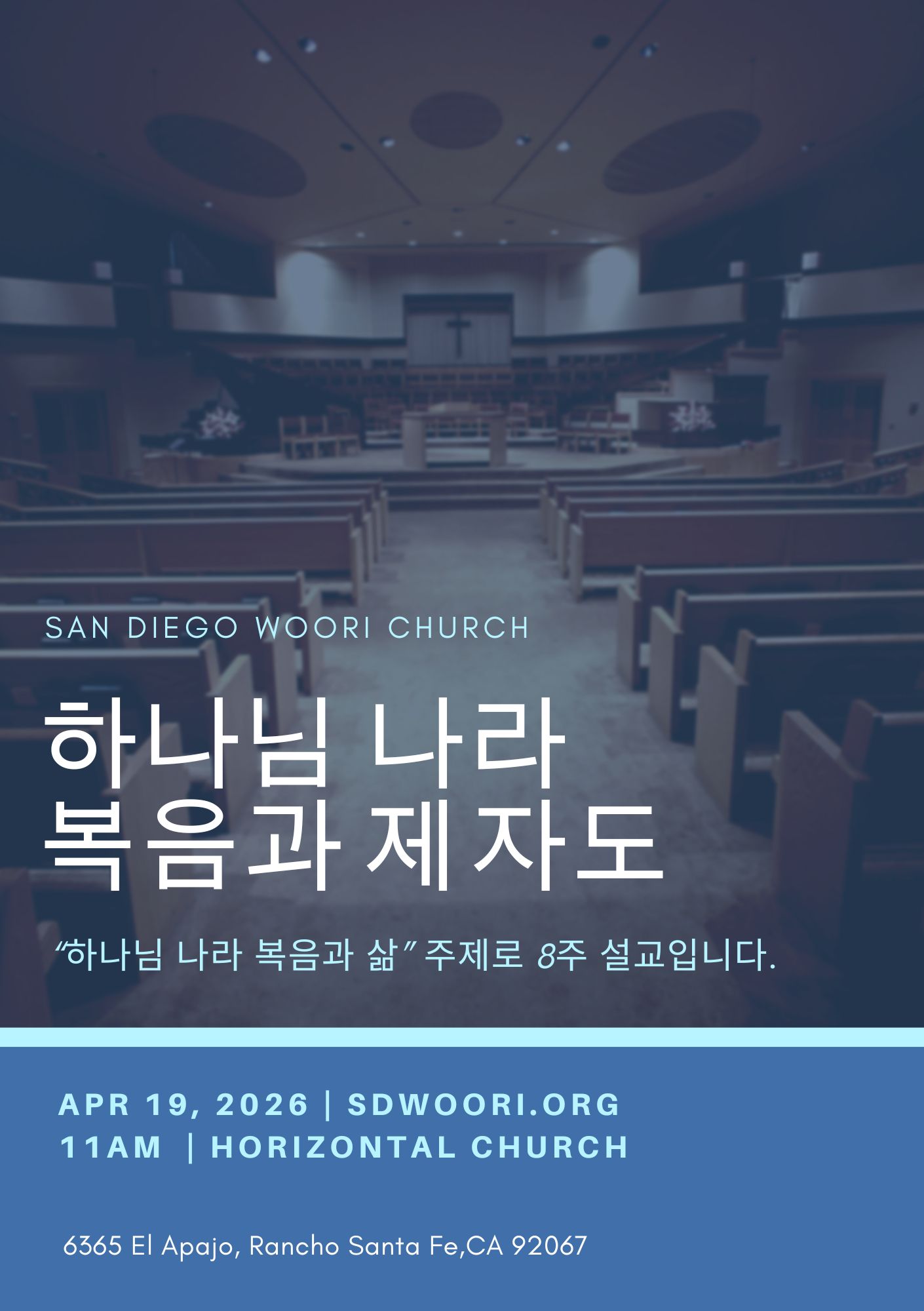 샌디에고우리교회는 호라이존 교회에서 주일 오전 예배 드립니다. 누구든지 참여가 가능하며 한국어 예배입니다.